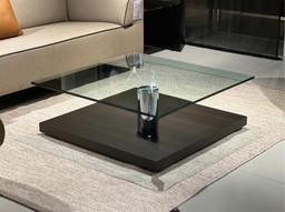 Table basse Bayot en bois massif avec plateau en verre – Style vintage/ethnique