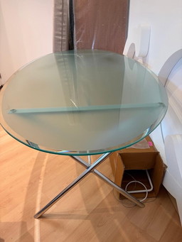 Table de salle à manger en verre Fritz Hansen avec pieds chromés