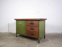 Tabouret en épingle à cheveux. Chrome/peluche verte.