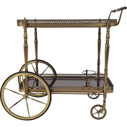 Chariot du milieu du siècle en bois et laiton, France années 1950