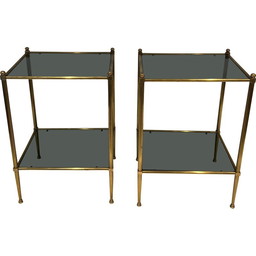 Paire de tables d'appoint en laiton et plateaux en verre fumé, France 1970