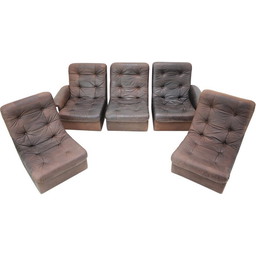 Canapé modulaire à cinq places en cuir, 1980Canapé modulaire à cinq places en cuir, 1980