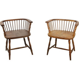 Paire de fauteuils à dossier bas Winsdor en noyer d'époquePaire de fauteuils à dossier bas Winsdor en noyer d'époque