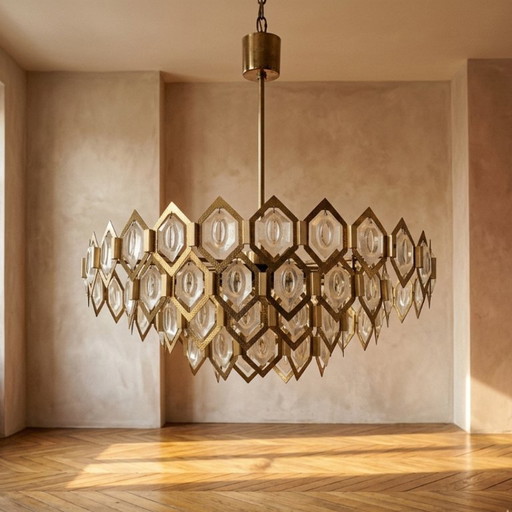 Lampe avec abat-jour trapézoïdal, patine laiton