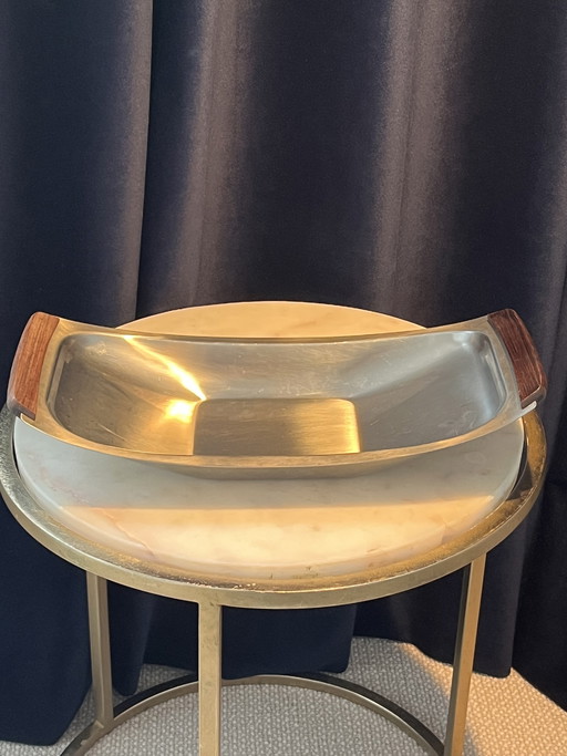 Plat de service vintage Alfara Alessi – Acier inoxydable – Bord nacré