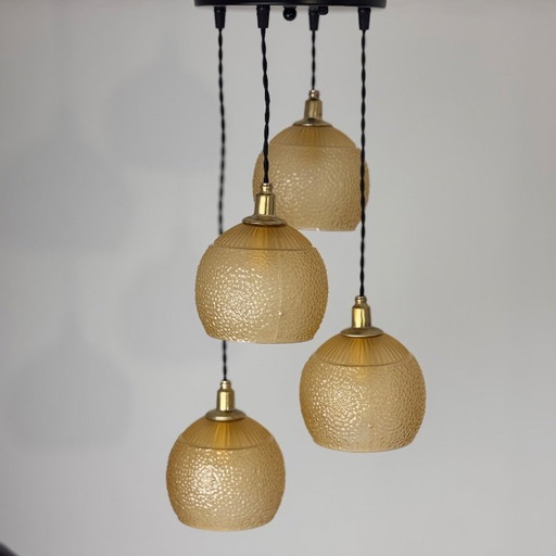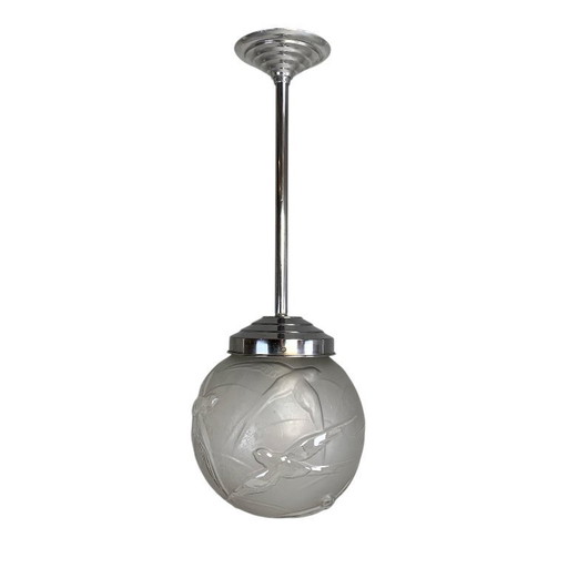 Suspension globe en verre sérigraphié aux motifs floraux - mid. XXeme