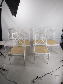 4x Chaises de salle à manger vintage avec assise en jonc