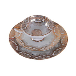 Plat à gâteau Art nouveau Art déco en céramique et métal, décor de raisins