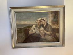 Peinture chinoise 'Back Glass' Eglomisé Femme Vintage avec Luth Vers 1900