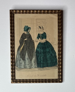Fleur D’Iris Sur Papier Encadrement Bois Vintage