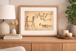 Aquarelle représentant une souris dans un coin | Avec cadre