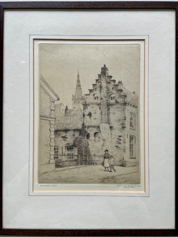 Marie Louise Ogier - Magnifique aquarelle « deux enfants cueillant des fleurs « vers 1980