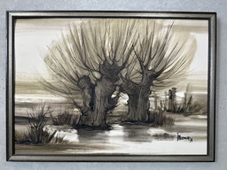 Schilderij van Kunstenaar Charles Dehoy 1872-1940 uit Brussel Sint Gilles- - het werk stelt een dorp in HAREVILLE in Frankrijk
