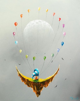 Une belle peinture d'un héron intitulée : Der Blaue Reiter (peinte à la main)