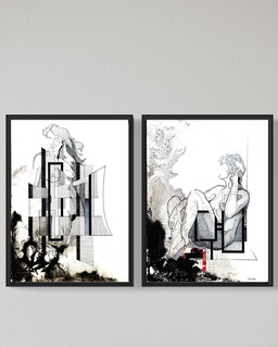 Lot de 5 Esquisses sur Papier Blanc 250g. Format 21x14,5 cm.