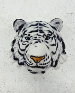 Masque mural léopard en céramique blanche