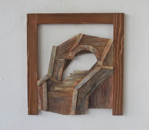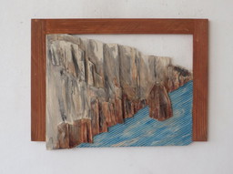 Bas-relief en bois laqué bleu. Travail contemporain d’artiste français.