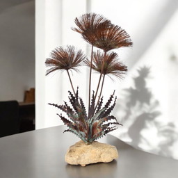 John Steck Desert Rose Sculpture brutaliste vintage en métal et pierre