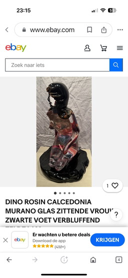 Sculpture en verre de Murano des années 50 avec feuilles d'or