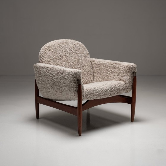 Conçu dans le plus pur style scandinave, ce fauteuil en teck incarne l'élégance et le confort. Sa structure aux courbes harmonieuses, soigneusement travaillée en teck massif, révèle la beauté naturelle du bois, avec ses tons chauds et son grain distinctif. Pensé pour allier esthétique et confort, les lignes fluides des accoudoirs et des pieds dessinent une silhouette accueillante, reflet de l'artisanat moderne du milieu du XXe siècle.