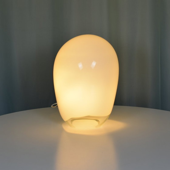 La lampe de table Nessa, conçue par Luciano Vistosi et produite par Vistosi dans les années 1970, est un magnifique exemple de verre soufflé à la main. Diffusant une lumière douce et chaleureuse, cette lampe au style intemporel sublimera n'importe quelle pièce. Son câblage d'origine et sa prise européenne lui confèrent un charme authentique.