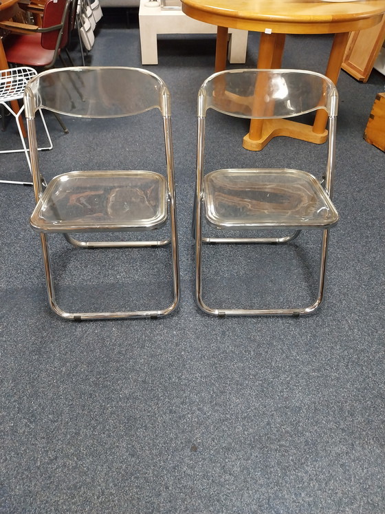 Ce lot de deux chaises pliantes italiennes des années 1970 illustre parfaitement le design fonctionnel avec une touche rétro. Fabriquées en plexiglas et métal de haute qualité, elles allient modernité, durabilité et robustesse.