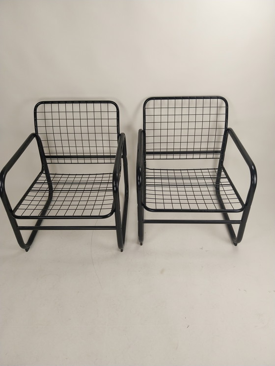 1 x ensemble de 2 fauteuils vintage Ikea mölle en fil d'acier 1980 par Knut et Marianne Hagberg.