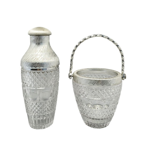 1960s Gorgeous mid-century vintage cristal taillé et aluminium cocktail shaker with ice bucket by Arir in excellent condition. Fabriqué en Italie _Shaker diamètre 3,54 x 9,05 H pouces diam cm 9 x cm 23 H _ Seau à glace diamètre 4,33 x 9,05 H pouces avec poignées diam 11 x cm 23 H avec poignées _ Seau à glace diamètre 4,33 x 5,51 H pouces sans poignées diam 11 x cm 14 H sans poignées