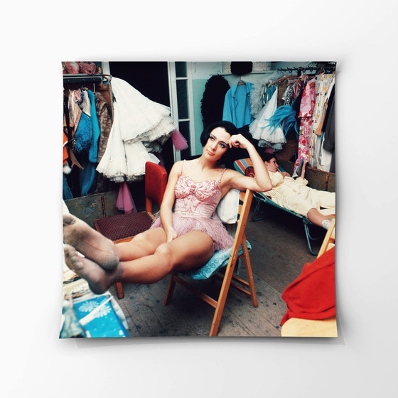 Dans une loge remplie de costumes de spectacle étincelants, la patineuse artistique Joan Haanappel se prépare. Nous sommes en 1965, aux Pays-Bas. Son regard est concentré, sa posture gracieuse - même en dehors de la patinoire. Un rare moment d'intimité d'une icône du sport alliant beauté et force. Capturé par le photographe Theo van Houts.