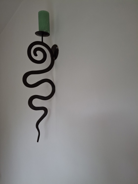 2 inhabituels chandeliers en fer forgé noir de Maroeska Metz. Avec sa boucle Maroeska originale et sa taille imposante de 67 cm, ce chandelier ajoute un accent "château" aux intérieurs classiques et modernes.
