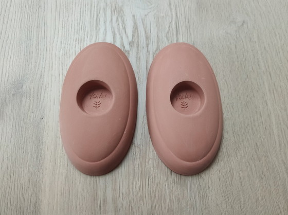 Ces pièces polyvalentes arborent une teinte terre cuite mate et chaleureuse. Grâce à l'anneau central en relief, elles sont parfaites comme photophores élégants, mais peuvent également servir de petits bols pour ranger bijoux ou chocolats, par exemple.