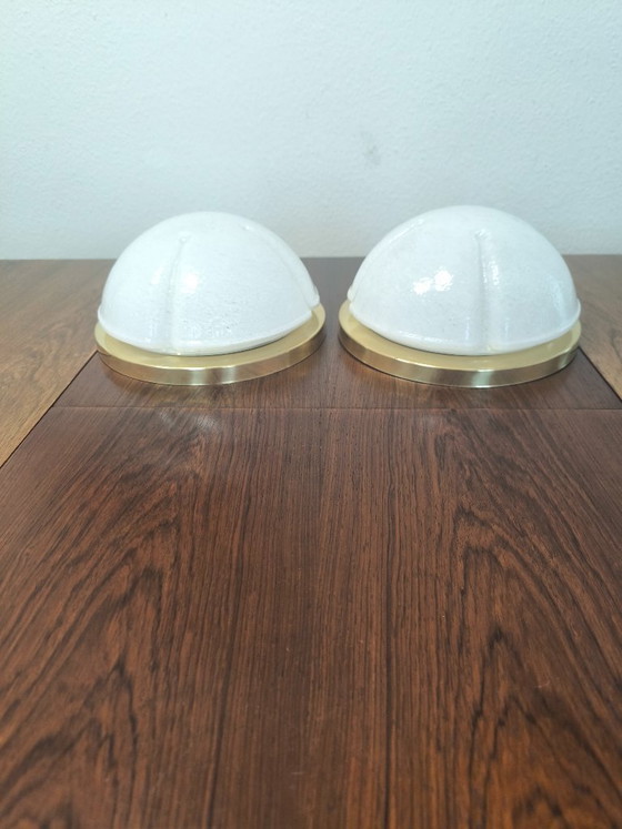 Deux lampes de plafond vintage de Limburg Leuchte, datant des années 1960. Ces lampes, au style Mid-Century Modern raffiné, apporteront une touche d'élégance à tout intérieur. Diamètre : environ 22 cm.