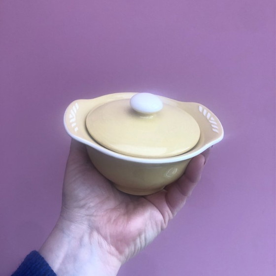 Sucriers "Gul Sissel" de chez Figgjo Flint Norway, jaune et blanc, design Ragnar Grimsrud. Art de la table scandinave du milieu du XXième s. Années 50. Pièces rares.