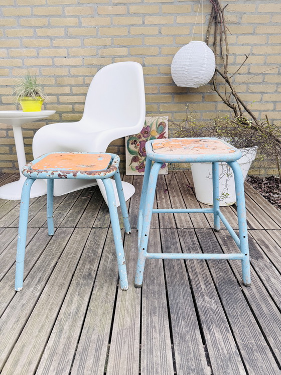 Deux tabourets vintage robustes en métal, légèrement rouillés !