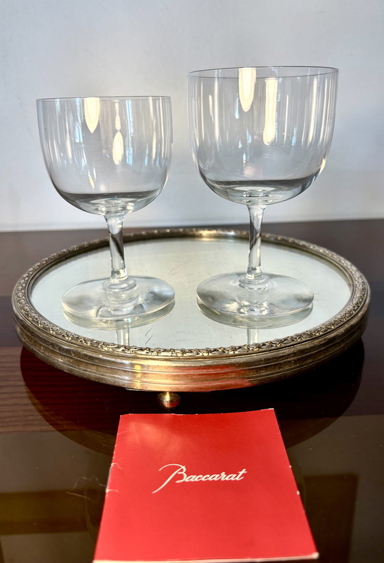 Une paire exquise de verres en cristal, modèle élégant « ballon », signée Baccarat et fabriquée en France avant 1936. Ces pièces, produites avant cette date, ne sont pas signées ; leur authenticité est toutefois attestée par un catalogue, fourni avec l’annonce.