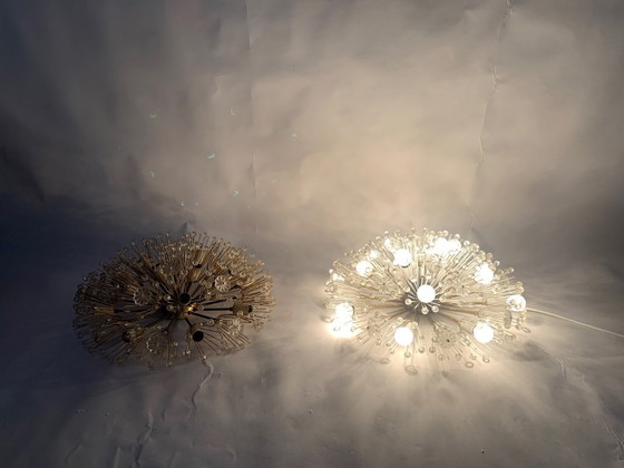 Cette paire de plafonniers encastrés Emil Stejnar est un exemple étonnant du design moderne du Mid Century. Présentant une belle combinaison de métal et de verre, ces lampes créent un effet éblouissant lorsqu'elles sont éclairées. Le design complexe met en valeur le style caractéristique de Stejnar, ce qui en fait un complément parfait pour tout intérieur vintage ou moderne. Malgré une légère décoloration du métal, ces lampes sont en très bon état et prêtes à embellir votre espace.