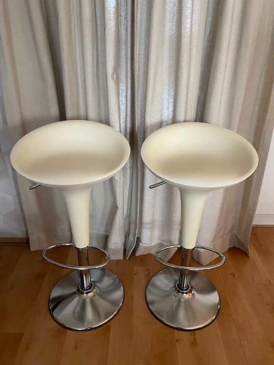 Le tabouret de bar Bombo est une création innovante de Stefano Giovannoni. Il se compose d'une base chromée et d'un siège en ABS moulé par injection qui pivote à 360 degrés. Il s'agit d'une chaise très confortable qui peut être facilement élevée et abaissée selon les besoins. Il s'agit d'un produit authentique, car il existe de nombreuses contrefaçons.