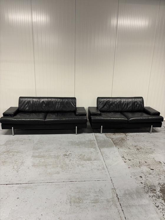 2x zwart leren Rolf Benz bank in prachtige staat. Ook los van elkaar te koop. Prijs is voor de set