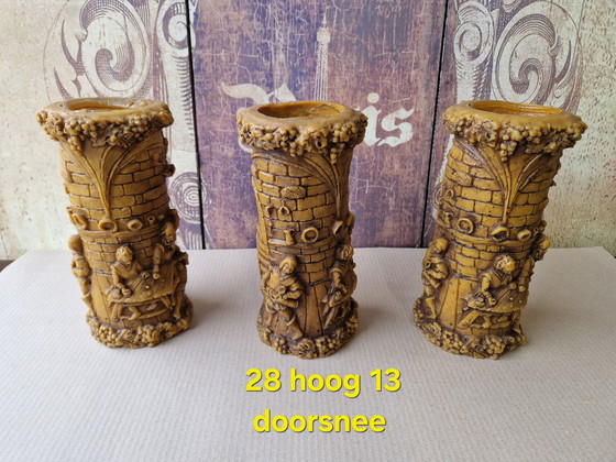 Ce lot de trois grandes bougies impressionnantes apporte une touche d'élégance classique à votre intérieur. Avec leurs reliefs détaillés et leurs chaudes nuances de brun, elles sont à la fois fonctionnelles et esthétiques. Parfaites pour créer une ambiance chaleureuse dans n'importe quelle pièce.