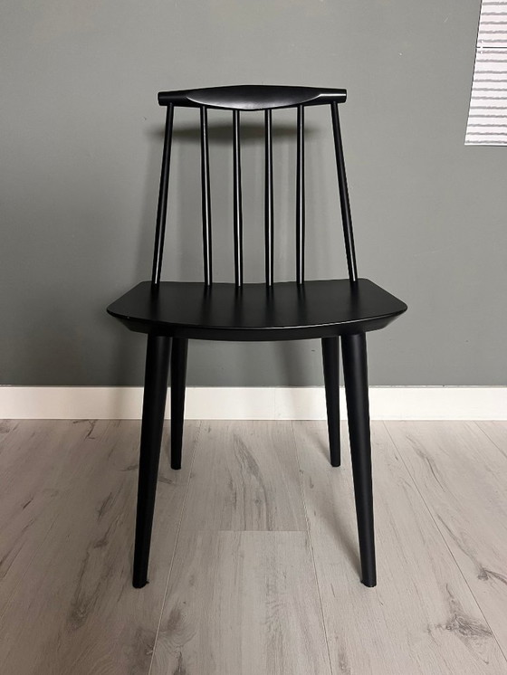 Trois chaises de salle à manger Hay, modèle J77, noires.