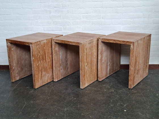 Cet ensemble de trois tables d'appoint en bois massif dégage une élégance naturelle qui sublimera votre intérieur. Fabriquées en bois issu de forêts gérées durablement, elles sont robustes et durables. Leur design minimaliste les rend polyvalentes et s'intègre aussi bien dans un décor moderne que classique. Parfaites comme tables d'appoint dans le salon, la chambre ou le bureau, elles apportent une touche de charme intemporel à n'importe quel espace. Le prix indiqué est pour l'ensemble.