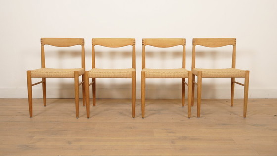 4 chaises de salle à manger | Bramin | H.W. Klein | Chêne savonné | Restaurées