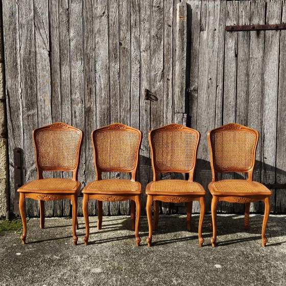 Lot de 4 chaises de salle à manger vintage en rotin - Style Louis XV des années 80