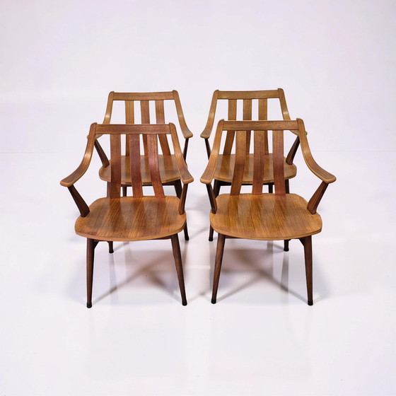 4 chaises en contreplaqué style milieu du siècle, Pays-Bas, années 1960