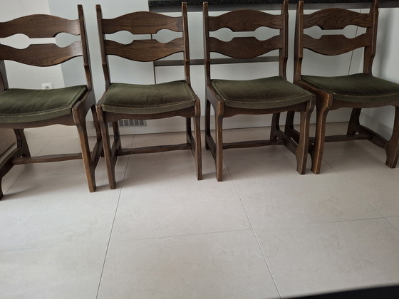 4 chaises vintage en chêne, dessinées par Guillerme et Chambron