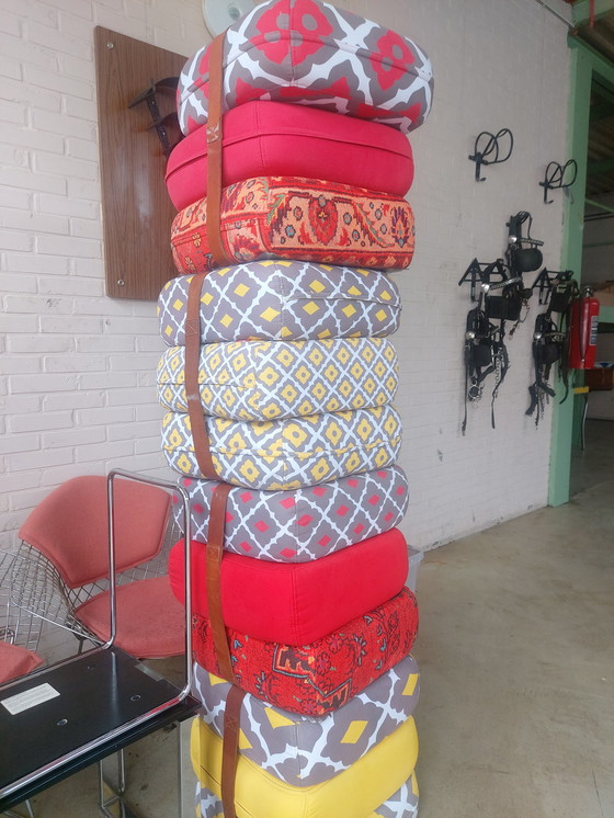 Ce lot de quatre coussins Fatboy Babushka apporte une touche colorée et confortable à votre intérieur. Les coussins présentent un style bohème avec des motifs vibrants en rouge, jaune et gris. Ils sont fabriqués en textile et dotés de sangles en cuir pour une fixation solide. Parfaits pour être utilisés comme coussins de sol ou d'assise, ces coussins ajoutent une atmosphère ludique et chaleureuse à n'importe quelle pièce.