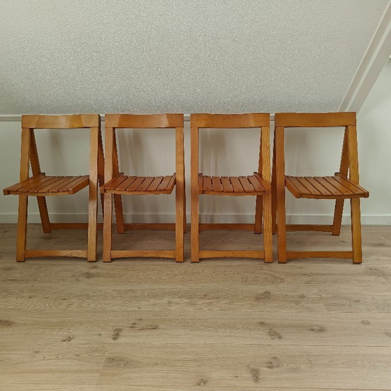 4 chaises pliantes en bois d'Alberto Bazzani, conçues par Aldo Jacober. Les chaises sont en très bon état.