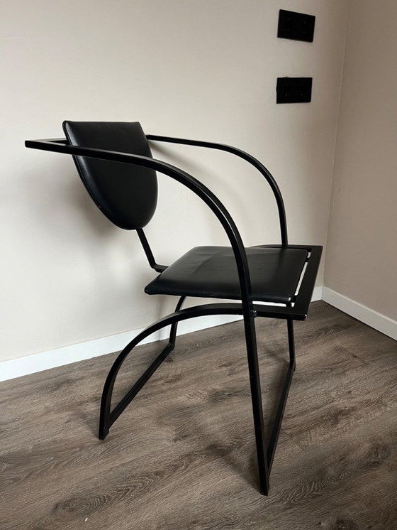 Les chaises sont en bon état vintage, présentant de légères traces d’usure normales pour leur âge et leur utilisation. La structure est robuste, le cuir est en bon état et toutes les chaises sont confortables et stables.