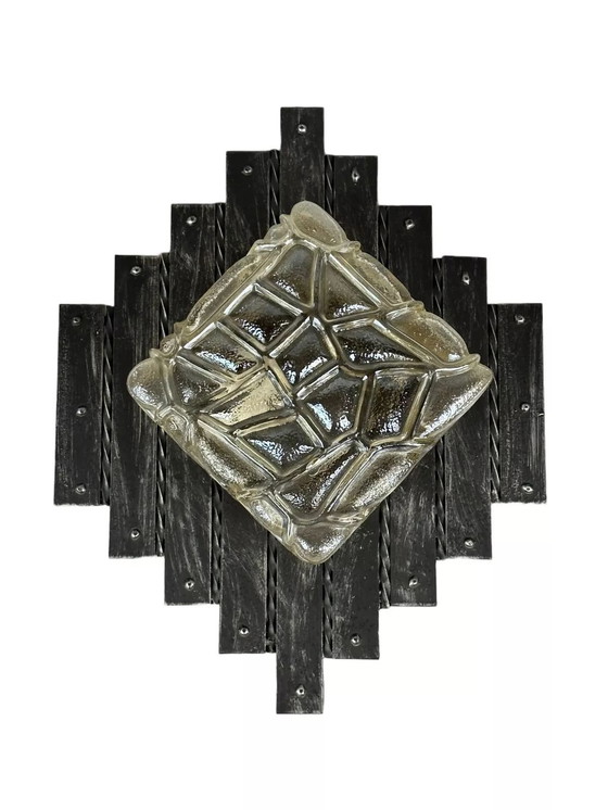 60's 70's Brutalist Applique murale fer & verre Wall Lamp 60s 70s