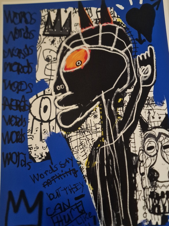 Donnez vie à vos murs avec cette affiche unique « WoRDs ! ». Imprimée sur papier d'art de haute qualité, cette œuvre offre une explosion de couleurs et d'expression. Le fond bleu contraste magnifiquement avec les éléments noirs et blancs, tandis que les touches d'orange ajoutent une note ludique. Cette pièce est parfaite pour les amateurs de graffiti et de street art et ne manquera pas de susciter la conversation dans n'importe quelle pièce. Apportez une touche de créativité à votre intérieur avec cette œuvre d'art saisissante !